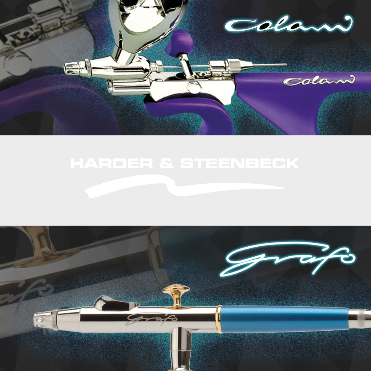 Zum ersten Mal seit über 40 Jahren präsentiert Harder & Steenbeck zwei neue Airbrush-Modelle: Grafo und Colani. Mit der Grafo stellt das Unternehmen universell austauschbare Düsensätze vor. In den folgenden Jahren wird dieser Entwurf (insbesondere im Hinblick auf den Evolution) zu einem modularen Bausystem erweitert, das sich über verschiedene Modelle erstreckt.