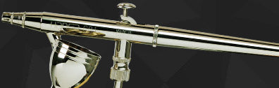 All Topline instruments are equipped with an adjustable paint volume control and a self-centring and self-sealing plug-on nozzlesystem that enables simple conversion to other nozzle sizes (0.2 / 0.3 / 0.4 mm). All Topline models are completely chrome plated.
