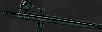 Hansa Topline series airbrushes have a controlled double function where the control lever only needs to be pulled in one direction to the rear. Air and paintare mixed automatically.