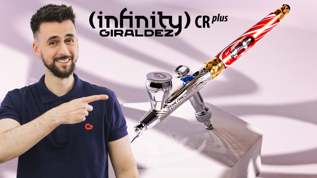 The GIRALDEZ INFINITY comes finished in our CRplus triple chrome plate, with a 2ml paint cup and the Fineline 0.2mm head. Increase your versatility even more by purchasing the accessory set of the 0.4mm Fineline head and the micro-cup. And of course, look after your GIRALDEZ INFINITY with the stable and secure Display Stand, in matching finishes.